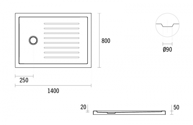 Base de duche Piano retangular antiderrapante 1400x800x50 Voltar à listagem