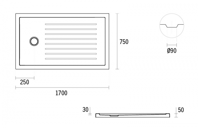 Base de duche Piano retangular antiderrapante 1700x750x50 Voltar à listagem